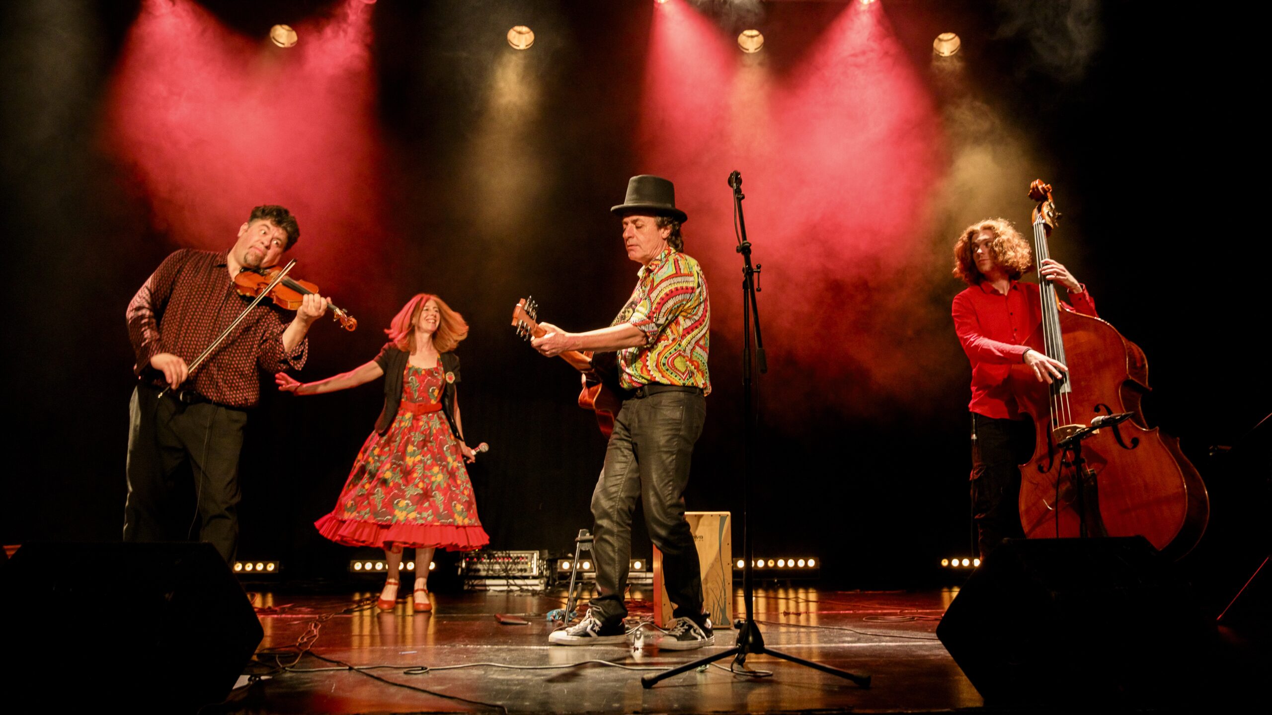 Lili (auteure et chanteuse), François (compositeur, guitariste, percussionniste), Antoine (contrebassiste), Alban (violoniste)
